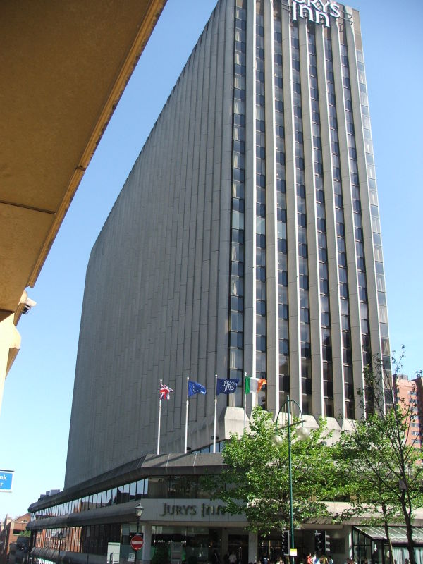 Continue along Broad Street between the Hyatt and the ICC, heading east. Past The Soloman Cutter, The Walkabout and The Merchant Stores on your left together with Edwards and The Brasshouse on your right. On the right you will find The Jury's Inn.